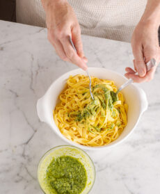 Potete scegliere se usare il mortaio, meglio se in legno d'ulivo, o il mixer: in questo caso utilizzate il frullatore a intermittenza per evitare che il composto, surriscaldandosi, diventi di colore troppo scuro.