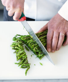 Quella di ricavare il succo dagli asparagi selvatici centrifugandoli, è una originale idea antispreco messa in pratica in questa ricetta dallo chef Valerio Centofanti, del ristorante L'Angolo D'Abruzzo.