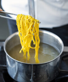 Cuocete i tagliolini: metteteli in una pentola con abbondante acqua salata per 2-3 minuti.
