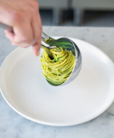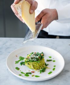 Mantecate con un po' di pecorino grattugiato. Utilizzate un mestolo per creare 4 nidi di tagliolini, metteteli al centro di altrettanti piatti.