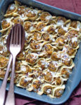 Tra le proposte vegane e vegetariane, vi suggeriamo di provare la teglia ortolana con briciole croccanti, un piatto rustico con piacevoli contrasti di consistenze, la teglia di verdure gratinate, con panatura leggera, la teglia di zucca gialla con i fiocchi di orzo.