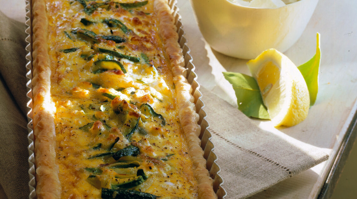 4) Levate la pasta dal forno, eliminate carta e legumi e riempitela con le zucchine rosolate.