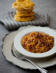 2) Trita 100 g di cipolla e falla imbiondire in una casseruola con 4 cucchiai d'olio extravergine d'oliva, aggiungi i pomodori, un cucchiaio di zucchero, sale e 10 foglie di basilico.