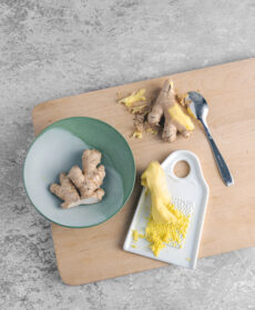 Unite lo zucchero e lo zenzero sbucciato e grattugiato. Trasferite la salsa in una casseruolina. Portate a ebollizione mescolando, poi spegnete il fuoco e lasciate raffreddare.