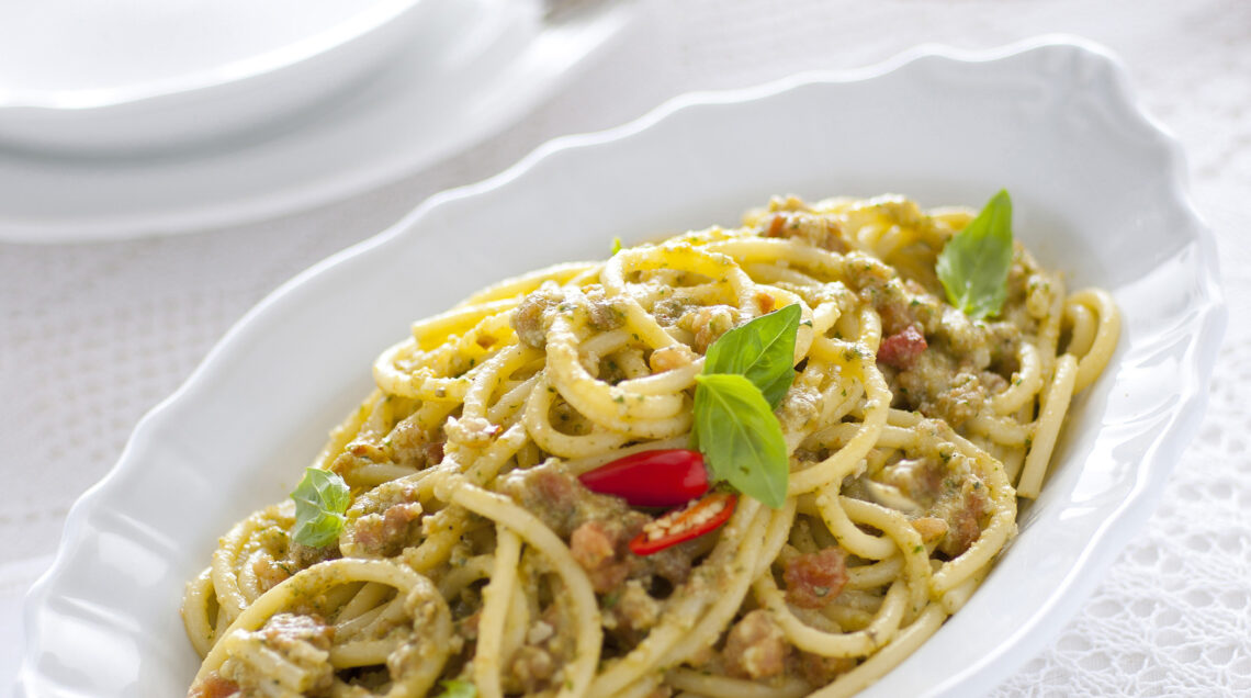 3) Come gustare il pesto alla trapanese. Lessa la pasta di semola di grano duro in abbondante acqua bollente salata, per il tempo indicato sulla confezione. Scolala al dente, conservando un mestolo di acqua di cottura; versa la pasta in una capiente terrina e condiscila subito con il pesto preparato (se necessario, aggiungi 5-6 cucchiai di acqua di cottura della pasta). Distribuisci la pasta nei piatti da portata e servila subito o anche fredda.