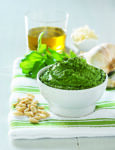 2) Versa le zucchine nel mixer, aggiungi il parmigiano grattugiato, le foglie di basilico, lavate e asciugate, i pinoli, l'aglio sbucciato, 40 gr. di olio extravergine di oliva, il pepe e un pizzico di sale, se necessario. Frulla fino a ottenere un pesto cremoso e omogeneo.