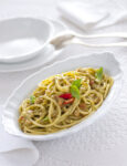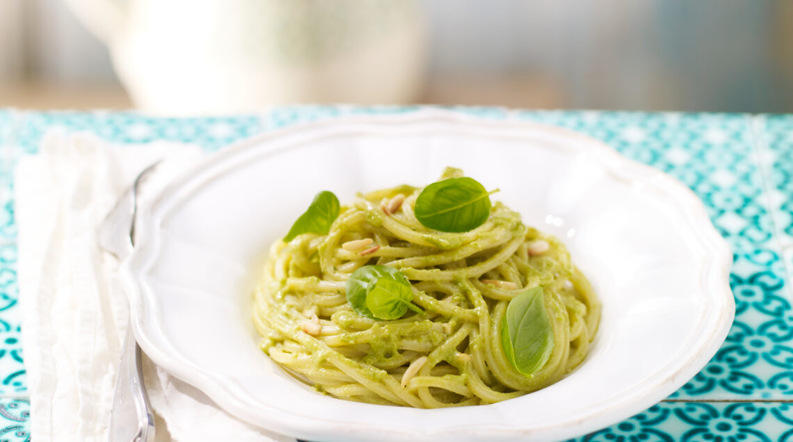 3) Cuoci gli spaghetti in una pentola capiente con abbondante acqua bollente salata, seguendo i tempi sulla confezione. Scola la pasta al dente e condiscila con il pesto alle zucchine preparato, mescola bene e servi subito.
