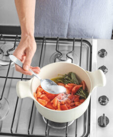 Una salsa di pomodoro fresco piacevolmente acidula, che aggiunge agli ortaggi maturi dell'estate un po' di succo di limone