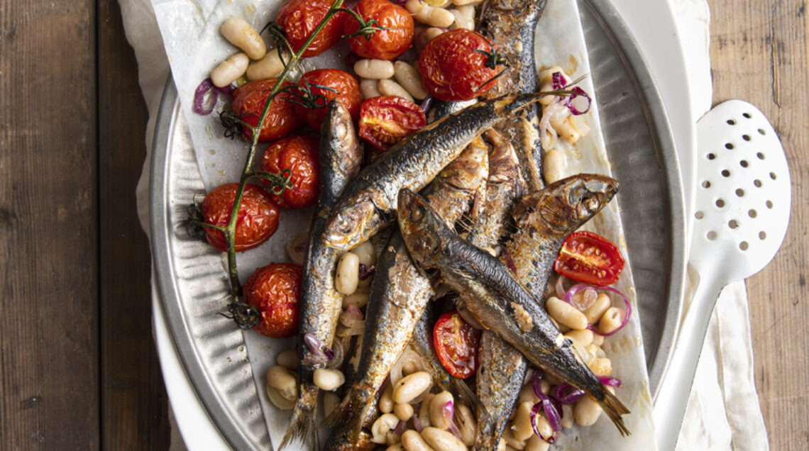 Un secondo mediterraneo, preparato con pesce azzurro, verdura di stagione e dolci fagioli bianchi