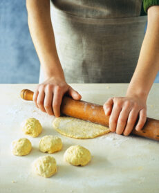 4) Trasferisci i dischi di pane acido sulla placca da forno foderata con carta oleata imburrata, e cuocili a 220° per 10 minuti, girandoli a metà cottura. Sforna gli Atta Roti ottenuti e servili ancora tiepidi.