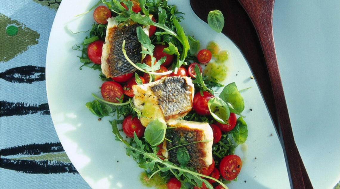 Un secondo di pesce leggero e croccante, servito con verdure profumate al basilico