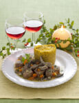 1) Mescola il preparato per il seitan con 2 dl di acqua e 2 prese di sale, aggiungi altri 0,5 dl di acqua e impasta cercando di rompere eventuali grumi. Forma con le mani un panetto allungato, incartalo in un foglio di carta da forno, legalo con spago da cucina e cuocilo a vapore per 2 ore. Avvolgi il seitan, ancora incartato, in uno stuoino di bambù (quello per preparare il sushi), stringendo forte e legando lo stuoino con altro spago o con elastici. Fai raffreddare in frigo per 2-3 ore.