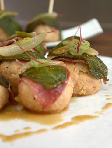 1 Lavate e asciugate la salvia e il rosmarino. Infarinate leggermente il capocollo e fatelo rosolare dolcemente in una casseruola con il burro, un dl di olio e le erbe aromatiche, girandolo su tutti i lati con due mestoli di legno per non bucarlo. Intanto scaldate il latte in una casseruolina finché diventa tiepido.