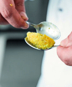 Aiutandovi con 2 cucchiai formate tante quenelle di giardiniera per decorare.