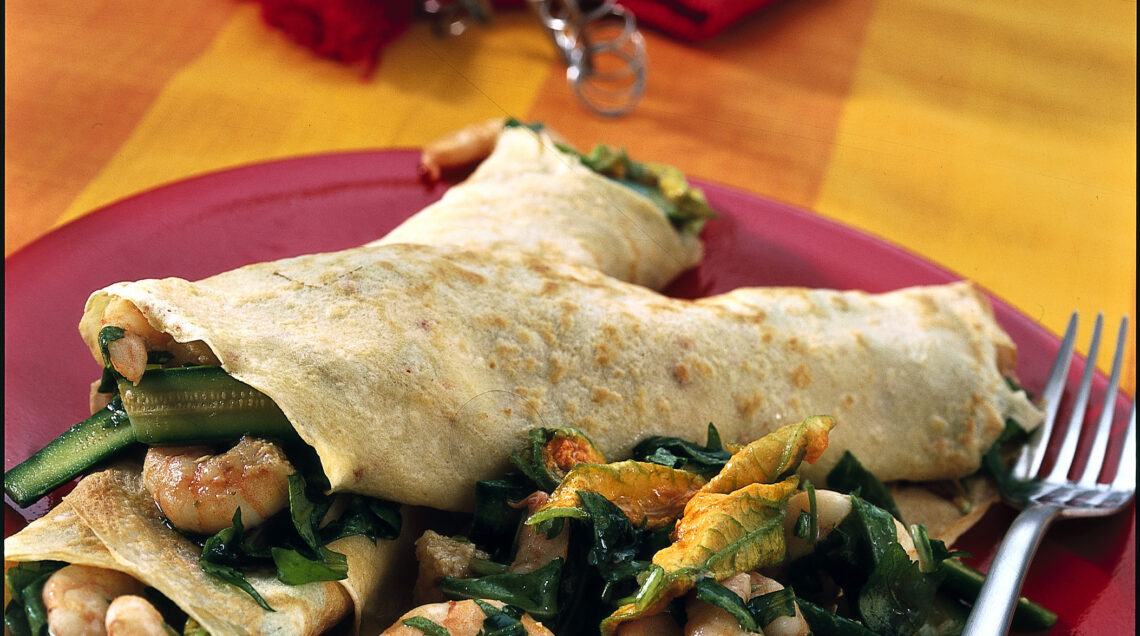 arrotolale e servi subito le crepes con gamberetti e zucchine.