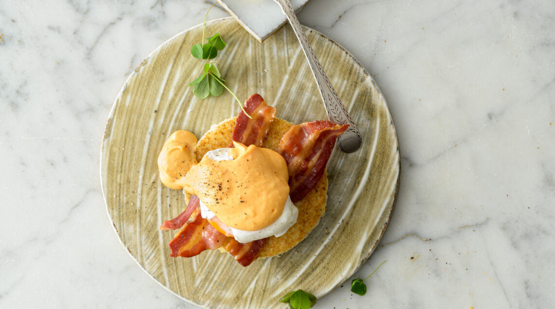 Un incontro di sapori, uno più sfizioso dell'altro: a partire dal pane, rosolato nel fondo di cottura del bacon croccante, per arrivare all'albume morbido che lascia scivolare fuori il tuorlo cremoso. Il tocco finale è l'incontro con la salsa che profuma di arancia
