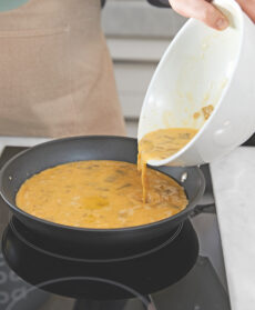 Unite nel composto di uova le verdure preparate e mescolate delicatamente.
