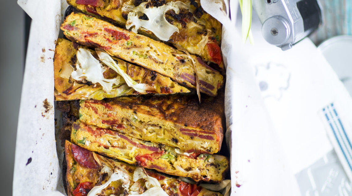 Verdure, salame piccante e pomodorini si tuffano nelle uova sbattute per una ricetta accattivante, facile e sfiziosa