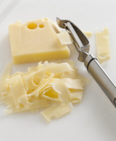 Togliete la crosta al formaggio, poi dividetelo a lamelle sottili aiutandoti con il pelapatate. Sgusciate le uova, separando i tuorli dagli albumi. Sbattete leggermente i primi con una forchetta e aggiungete l'erba cipollina tagliuzzata, un pizzico di sale e una macinata di pepe.