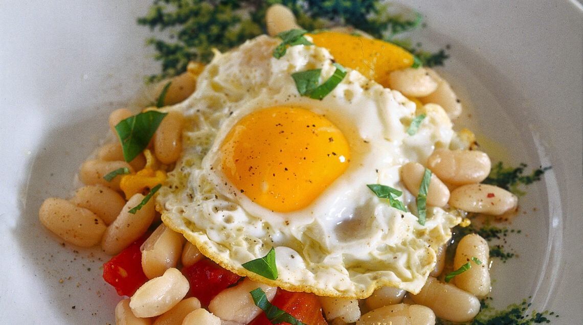 3) Coprite e lascia sobbollire per circa 3 ore, versando altra acqua calda se necessario. Trascorso questo tempo, servi i fagioli tiepidi con le uova cotte al burro.