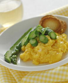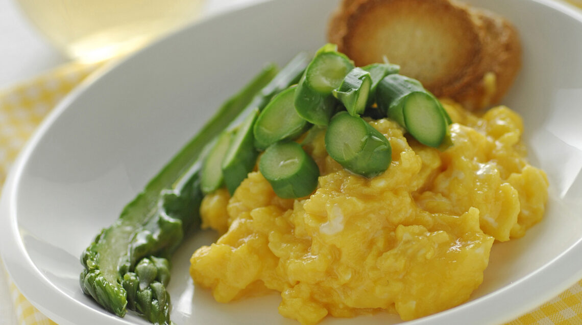 Se vuoi che le uova strapazzate risultino ancora più morbide, sbattile all'inizio con 1-2 cucchiai di panna fresca ben fredda. Accompagna le uova, a piacere, con crostini di pane e asparagi lessati e ripassati in padella con poco burro.