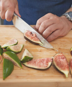 Tagliate i fichi a metà oppure in quattro, secondo le dimensioni. Potete anche sostituirli con fichi secchi prima ammorbiditi in un po' di brandy.