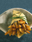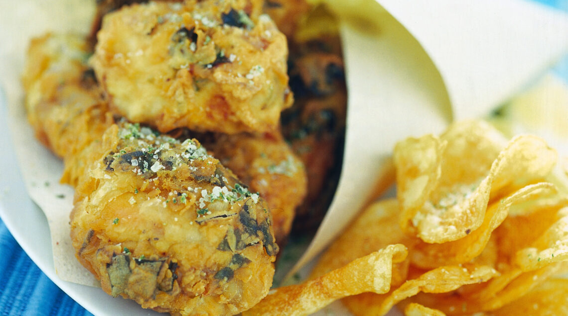 5) Servi i tuoi bocconcini di pollo croccanti con chips cosparsi con il sale aromatizzato al rosmarino e salvia.