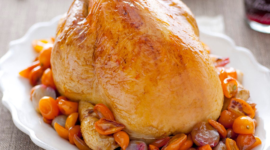 Un pregiato volatile cucinato al forno si abbina ai migliori agrumi di stagione: mandarini cinesi, arance, pompelmi e limone donano profumi, dolcezza e leggera acidità