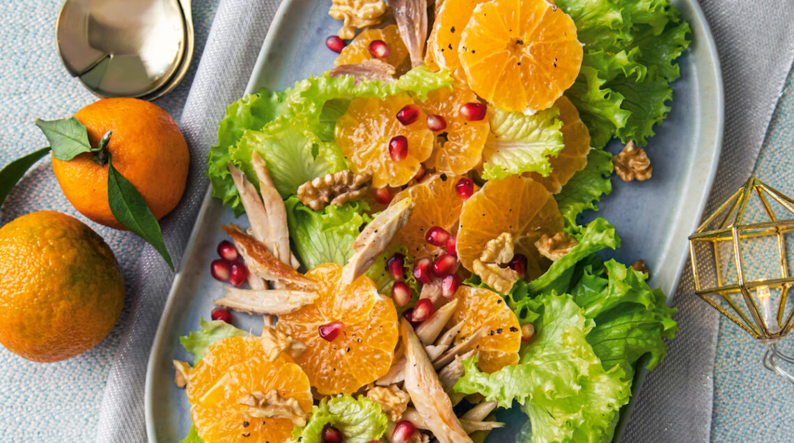 Questo piatto delicato e gustoso chiama a raccolta ingredienti natalizi, le clementine, la melagrana, le noci, la faraona. La frutta dolce e dai colori intensi e accesi si sposa con una carne pregiata, proposta in più portate nei menù delle feste. Un contorno che diventa un secondo leggero o un antipasto importante.