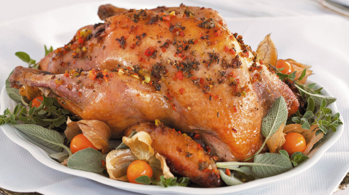 Un volatile pregiato, dalle carni sode e gustose, arriva sulla tavola delle occasioni speciali con la sua saporita farcitura di ortaggi e, a sorpresa, un contorno di frutta