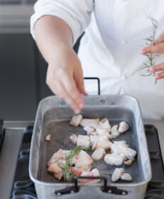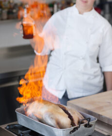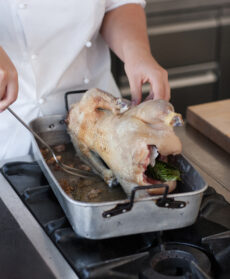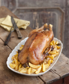 Un grande classico della tradizione, ideale per i giorni di festa. Il volatile è profumato con erbe aromatiche, aglio e brandy