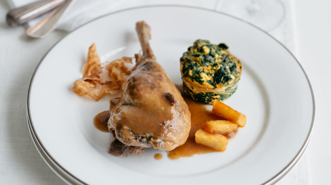 Un secondo di carne da intenditori a base di coscia d'oca, cotta in forno e accompagnata con le mele caramellate e la loro cremina agrodolce. Uno sformatino di asprelle e il piatto gourmet riempie la tavola delle Feste