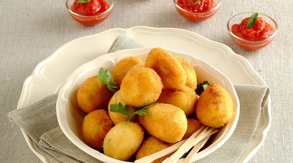 2) Crea poi tante polpettine ovali, avvolgi con una impanatura e friggile.