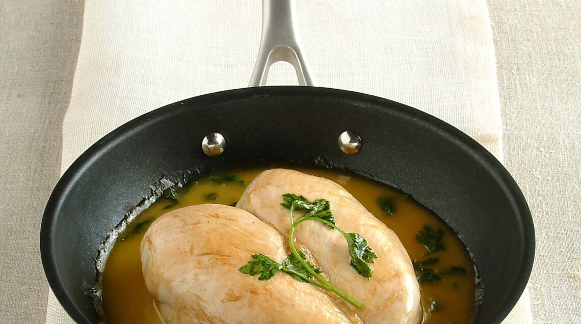 4) Taglia poi il petto di pollo a fette sottili, disponile sui piatti e condiscile con il sughetto.