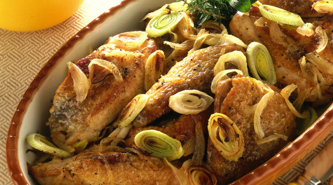 Un secondo a base di carne bianca cucinato in forno con limone, Porto, timo e cipolle. La carne di pollo si impregna di tanti sapori che la rendono tenera, succosa, saporita. La polpa del volatile marinata è più predisposta alla cottura, restando morbida e non seccandosi.