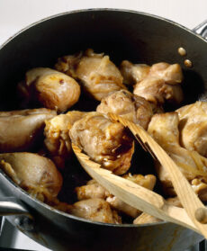 Dopo 15-20 minuti assaggiate, regolate di sale e completate con le scaglie di mandorle; mescolate ancora e continuate la cottura per altri 5 minuti: la carne dovrà risultare tenerissima e il sugo abbondante e molto saporito.