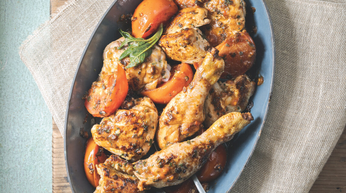 I pezzi di pollo cuociono tra i profumi del vino, del limone e della salvia. Un secondo rustico da servire con spicchi di pomodori maturi