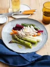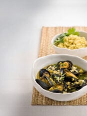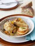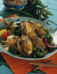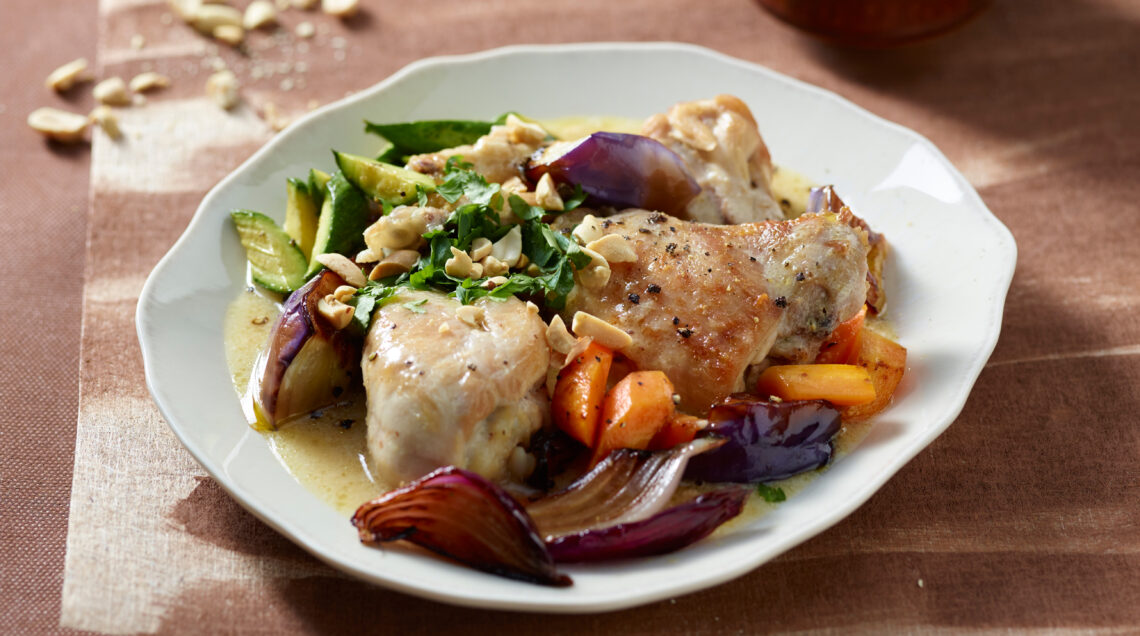 3) Completa e servi il pollo brasato al cocco con arachidi e verdure. Unisci al pollo le verdure cotte tenute da parte e cuoci per altri 10 minuti. Cospargi il tutto con le arachidi salate tritate grossolanamente e una manciata di foglie di prezzemolo e servi il pollo brasato al cocco con arachidi e verdure ben caldo.