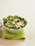 1) Prepara gli ingredienti per il pollo freddo. Lava le foglie di lattuga più tenere e asciugale. Apri la scatola di mais, versalo in un colino per eliminare il liquido di conserva e raccoglilo in una terrina. Sbuccia il cetriolo, taglialo a rondelle sottili, aggiungile al mais e mescola. Togli la pelle e le ossa al pollo arrosto freddo e riducilo a cubetti grossi.