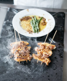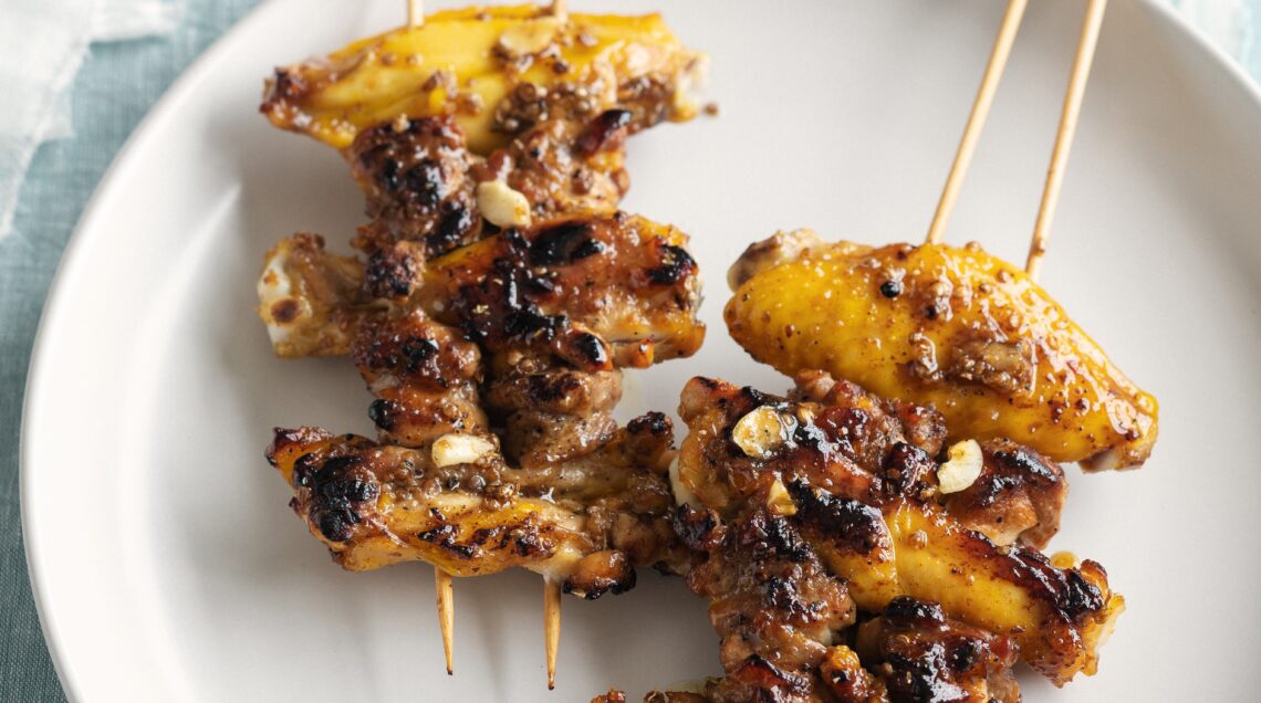 Miele, ginepro, coriandolo, limone e aglio: sono gli ingredienti della marinata che profumano la carne durante la cottura alla griglia. Un pot pourri di sapori per spiedini perfetti anche come finger food