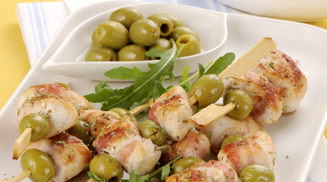 Irresistibili per i bambini grazie all'accoppiata con le olive, questi spiedini sono un jolly anche per un buffet o un brunch