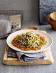 2) Rosola le cipolle affettate in una casseruola con il lardo, toglile e tienile da parte. Nella stessa casseruola, rosola il pollo. Quando sarà ben colorito, aggiungi le cipolle, sala e bagna con il succo delle 2 arance e un po' di marinata.