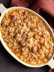 4 Unite l'alloro, coprite la casseruola con un foglio di alluminio e proseguite la cottura in forno caldo a 170° per 40 minuti rigirando la carne di tanto in tanto e bagnandola con il brodo quando è necessario.