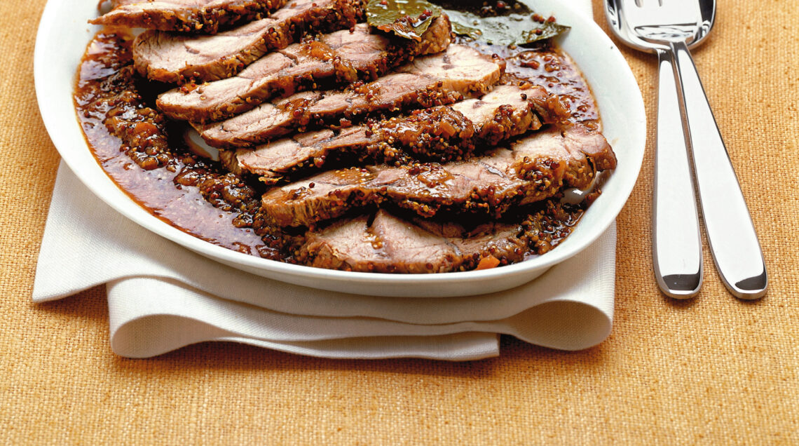4) Quando l’arrosto di punta di vitello all’aceto è pronto, lascialo riposare per qualche minuto, poi affettalo e servilo con un po’ del suo sughetto.