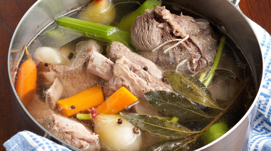 2) Dopo aver raggiunto l’ebollizione unisci la carne e cuoci, con coperchio chiuso, per 2 ore. Con un mestolo forato, poi, elimina tutto il grasso che sale in superficie.