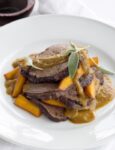 3) Prendi le rape e puliscile con acqua fredda. Tagliale a spicchi della stessa dimensione e versale delicatamente nella pentola con la carne. Lascia cuocere per altri 30 minuti. Con una forchetta controlla che le rape siano cotte. Spegni e lascia raffreddare. Servi impiattando con olio crudo a piacere.