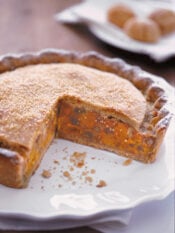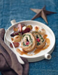1) Prepara gli ingredienti. Trita nel mixer i cranberries disidratati con i gherigli di noci, una manciatina di foglie di timo e mezzo spicchio d'aglio. Lavora il paté di vitello per ammorbidirlo un po', aggiungi il trito e amalgama con cura gli ingredienti. Incidi il carré di vitello per il lungo e apri la carne in modo da ricavare un grande rettangolo. Sala, pepa e disponi il composto preparato, arrotola la carne e legala con qualche giro di spago da cucina.