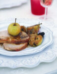 3) Prepara la salsa e completa. Scola l’arrosto e lascialo riposare per 5 minuti su un tagliere. Preleva il fondo di cottura e, in una piccola casseruola, amalgamalo sulla fiamma dolce con il burro lavorato con l'amido di mais. Affetta l'arrosto di vitello con cranberries e noci e servilo con un po' di salsa, guarnito con i ribes appena scottati in padella antiaderente con un filo di olio extravergine di oliva.