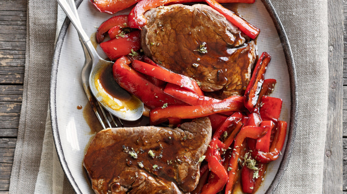 Il palato festeggia già al primo boccone di questa ricetta semplice, ma gustosa: la carne marinata e cotta a lungo a bassa temperatura si fa saporita e tenera. Perfetto l'abbinamento con i peperoni serviti con il loro sughetto sciropposo