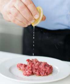 Raccoglietela carne su un piatto e conditela con sale fino, pepe, un filo di olio e poche gocce di succo di limone.